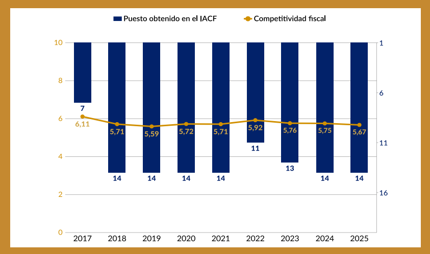 Navarra, según señala el informe, es la comunidad que ha sufrido el mayor retroceso de competitividad fiscal en los últimos tiempos, perdiendo siete posiciones en el ranking hasta quedar decimocuarta en 2025. En 2023, Navarra elevó el límite exento por los rendimientos brutos del trabajo de 12.600 a 14.500 euros. Sin embargo, al no haber subido la bonificación del rendimiento del trabajo hasta el mismo nivel, las rentas bajas, pero por encima de 14.500 euros, siguen pagando más que en las demás comunidades de régimen común.