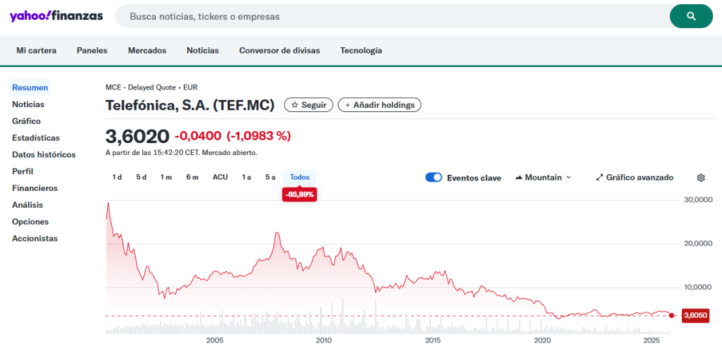 Regresando a ese 10% de Telefónica a través de la SEPI (que sería un 20% sumando el 10% del FROB), todos los españoles tenemos un problema con esa participación. No ya un problema de riesgo sistémico por la omnipresencia del gobierno, sino un problema económico. Para conseguir ese 10% de las acciones de Telefónica, según la información remitida a la Comisión Nacional del Mercado de Valores (CNMV), la SEPI adquirió un total de 567 millones de acciones de a un precio medio de 4,02 euros por título, representando una inversión de 2.284,8 millones de euros. A nadie se le escapará por tanto que tenemos un problema ahora que Telefónica ha anunciado un recorte del dividendo a la mitad y que la acción cotiza a sólo 3,6 euros.