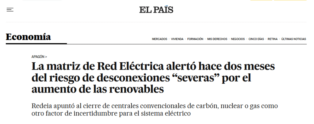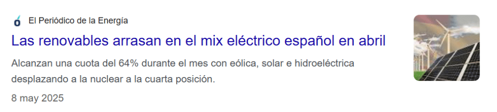 Lo que sí resulta llamativo desde hace meses es alguna no noticia que no se ha publicado. Es decir, antes del apagón hubo una notable sucesión de titulares en distintos medios presumiendo del elevado porcentaje del mix energético español que iban alcanzando las energías no renovables. Claramente se trataba de ir normalizando el objetivo de una energía 100% renovable. ¿Dónde están ahora esos titulares? ¿De repente tras el apagón hemos dejado de avanzar en el porcentaje de renovables en el mix energético? ¿Qué nos indica este hecho?