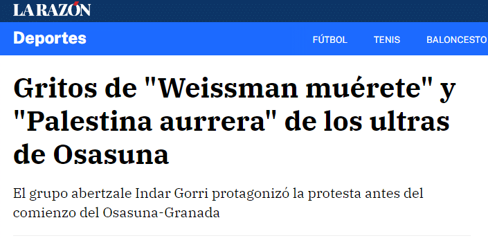 La pregunta una vez más es qué hace Osasuna respecto a toda esta gente, que no oculta en absoluto sus pretensiones y que son una fuente constante de mala imagen, problemas y sanciones para el club. Si los directivos de Osasuna están secuestrados por Indar Gorri y no pueden hacer nada que se rasquen la oreja o hagan un gesto para significar que están amenazados y no pueden hablar. La alternativa al temor es la complicidad.