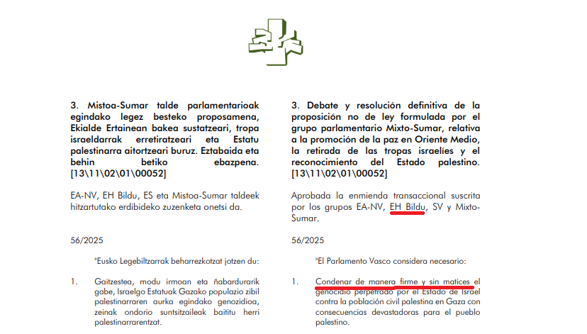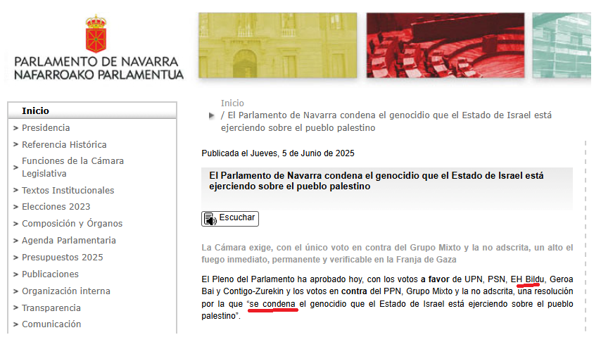 El problema con la izquierda abertzale, aunque hay que ver la de problemas que tiene la izquierda abertzale, es que ni siquiera puede ser coherente con su propio discurso. Así, por ejemplo, la izquierda abertzale se ha pasado décadas evitando la palabra condena para referirse al terrorismo de ETA, pero en cambio ahora vemos que no tiene problemas para apoyar declaraciones de condena cuando es el estado de Israel el condenado.