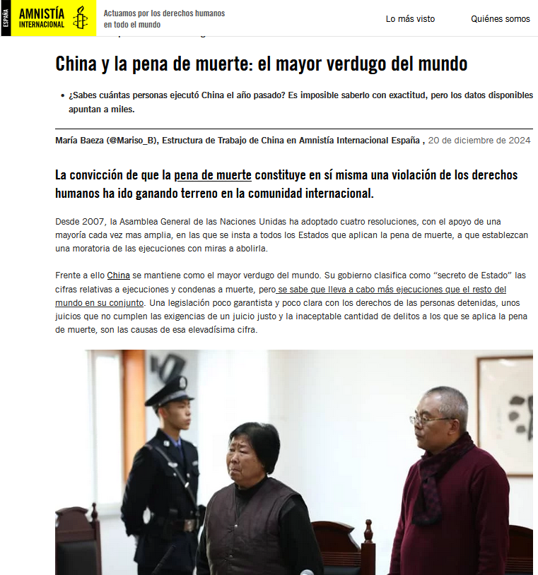 El titular de que China es el mayor verdugo del mundo, diga lo que diga Yolanda Díaz, no es un titular que se saca de la manga Navarra Confidencial, es algo que reconoce la propia Amnistía Internacional. China ejecuta cada año más personas que todo el resto del mundo junto.