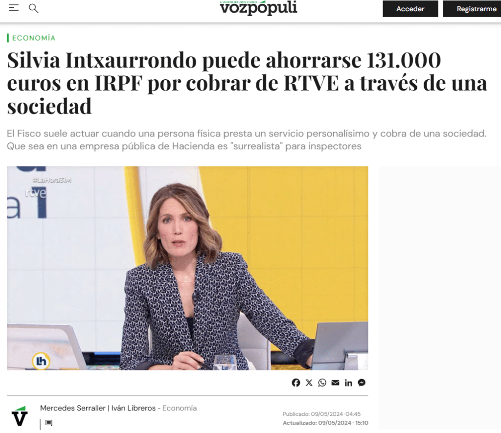 María Chivite ha usado sus redes sociales para promover el libro de Silvia Intxaurrondo y para presentar a esta periodista de RTVE como un ejemplo de periodismo de calidad comprometida con la verdad. ¿Cuál es sin embargo la verdad? La verdad es que Intxaurrondo es una persona bendecida por una lluvia de euros en la televisión pública colonizada por el sanchismo.