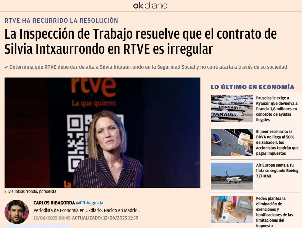 La lluvia además no recae sobre Intxaurrondo sino sobre una sociedad de su propiedad, para mayor gloria fiscal. Pero Chivite dice que es un ejemplo. Efectivamente, Intxaurrondo es una periodista que si la justicia investiga al entorno del presidente en vez de cargar contra el entorno del presidente carga contra la justicia. ¿De qué nos hubiéramos enterado de todo lo sucedido con Abalos, Cerdán, la mujer del presidente o su hermano si fuera por RTVE y Silvia Intxaurrondo?