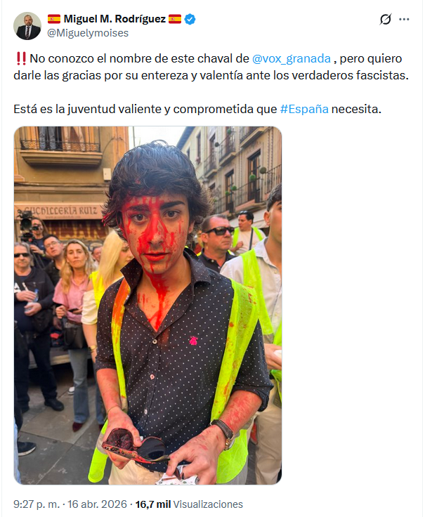 ¿Hay algún tuit hoy de Pedro Sánchez condenando estos hechos y a los acosadores de VOX? En realidad sería lo de menos, pero ni si quiera lo de menos lo ofrece el presidente del gobierno. Lo de más es que poco a poco se va normalizando que VOX tenga que sufrir una violencia sistemática. La gente no puede acudir libremente a un mitin o a un acto de VOX sin miedo a que la puedan insultar, agredir o lanzar pintura. Eso no es libertad. Eso no es democracia plena.