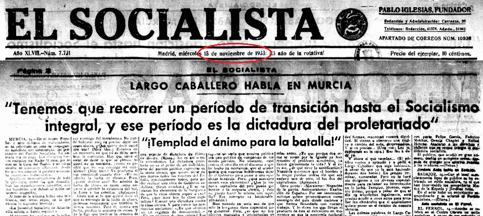 La hemeroteca resulta inequívoca respecto al carácter violento y antidemocrático del PSOE en los años 30. Las citas de sus líderes no dejan lugar a dudas. Estas citas, además, se pueden encontrar publicadas en los propios periódicos del PSOE y sus juventudes, los diarios El Socialista y Renovación. Es decir, ni siquiera cabe como excusa pretender que eran palabras que les atribuían sus rivales, sino que eran las que sus propios medios reflejaban con ardor llamando a las armas, la dictadura del proletariado y la revolución, siguiendo el modelo que Stalin había implantado en la Rusia soviética. Pero la evidencia de la belicosidad del PSOE no queda ahí.