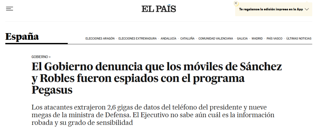 Entre todo lo eclipsado por el continuo torrente de escándalos que son el gobierno de Sánchez y el PSOE, una noticia que quizá no nos debiera pasar por alto es la de que Francia atribuye el espionaje a los móviles del gobierno español, incluido el teléfono de Sánchez, a los mismos autores que espiaron los móviles del gobierno francés, o sea los servicios secretos de Marruecos.