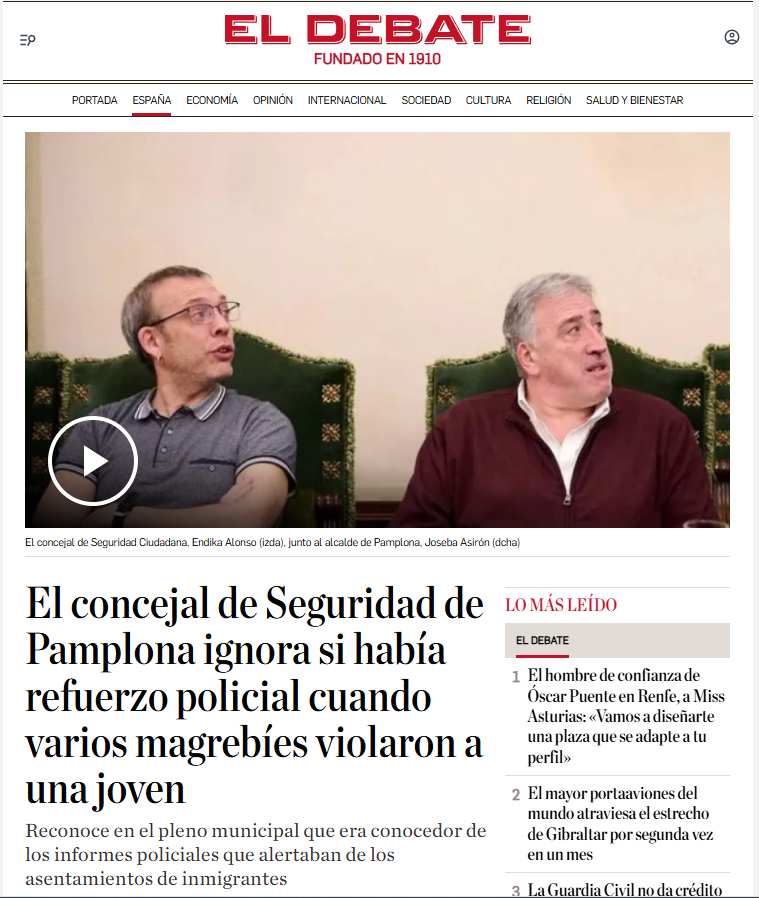 Lo que falla, sin embargo, no es sólo el contexto general. Lo concreto al ser examinado también revela y explica el desastre. El concejal de Seguridad Ciudadana del Ayuntamiento de Pamplona (Bildu), hace un par de días, era preguntado por las medidas de seguridad que se habían tomado respecto a la celebración de la Carpa de la UPNA, el marco en el cual tuvo lugar la agresión de la manada magrebí el pasado día 23. No sólo es la chica violada volviera de esa fiesta, y que de por sí en circunstancias normales la fiesta de la Carpa sea un acto masivo lleno de jóvenes que merezca una especial atención desde el punto de vista de la seguridad, es que además hacia semanas que se había denunciado un incremento de la inseguridad en la zona por la presencia de asentamientos ilegales de inmigrantes. Los acusados de la violación acampaban en uno de estos asentamientos. El concejal de Seguridad Ciudadana, tantos días después de la violación, reconoce no tener “ni idea” de si en torno a la celebración de la carpa hubo algún refuerzo de seguridad, pese a los informes de los que reconoce ser conocedor y que alertaban de los problemas en la zona a causa de los asentamientos. Ni antes ni después de la violación ha merecido esta cuestión por lo visto su atención. ¿Pero quién es esta eminencia de la que el Ayuntamiento de Pamplona hace depender nuestra seguridad?