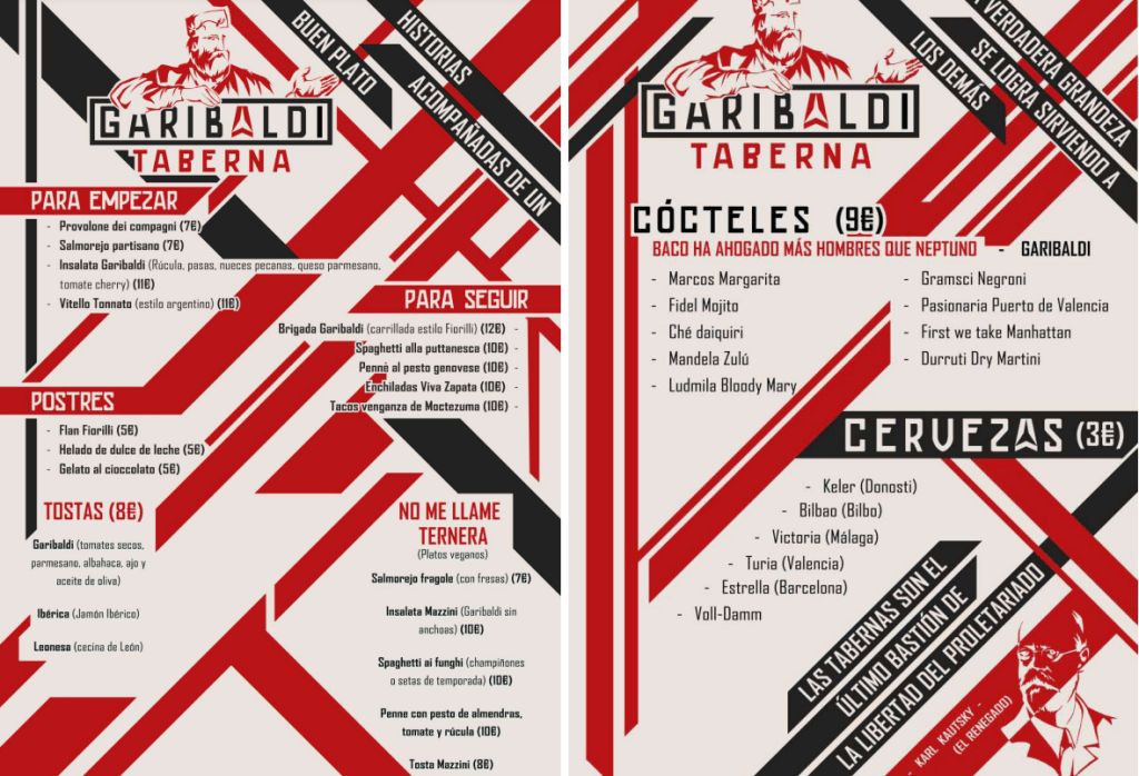 Por lo que puede apreciarse en la web de la taberna, la carta del establecimiento conserva básicamente la misma oferta y nomenclatura que la vieja Garibaldi. En realidad es todo lo mismo y a los mismos precios (o superiores) que cualquier otro bar-restaurante de la zona sólo que con nombres más rojipardos. La ensalada de tomate y lechuga de toda la vida la llamas Garibaldi y la clavas por 11 euros. Qué menos que 10 euros por unos tacos si los llamas La Venganza de Moctezuma. Moctezuma por otro lado todos sabemos que era un demócrata y un referente de la defensa de los derechos humanos. Hablando de demócratas y defensores de los derechos humanos que no desaparezca el guiño al etarra Josu Ternera, para el apartado de platos veganos. Que no falten tampoco referencias amables en la carta a dictadores como Fidel Castro. ¿Alguien se imagina a Abascal montando una taberna en la que los platos de la carta fueran el filete Generalísimo o la ensalada Adolf? Eso sí, en la taberna de los Iglesias todo a precios de mercado, presumiblemente también los salarios, en el mejor de los casos, ¿o no pagaba Canal Red 200 euros mensuales a los becarios? Que no parezca que las alternativas al capitalismo no son imaginarias. Nadie en el fondo hace mejor propaganda a favor del capitalismo que los Iglesias.