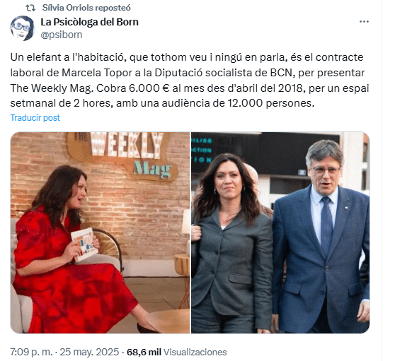 Cabe señalar que el programa de la mujer de Puigdemont sufrió una pequeña interrupción en enero, coincidiendo con el momento en que Puigdemont se negó a apoyar el famoso “Decreto Omnibus” y exigió una cuestión de confianza a Pedro Sánchez. En aquel momento, casualmente, la Diputación de Barcelona que financia el canal ya había pasado a manos del PSC. Felizmente Puigdemont acabó apoyando el decreto y la emisión del programa de la mujer de Puigdemont regresó a la normalidad, todo casualidad.
