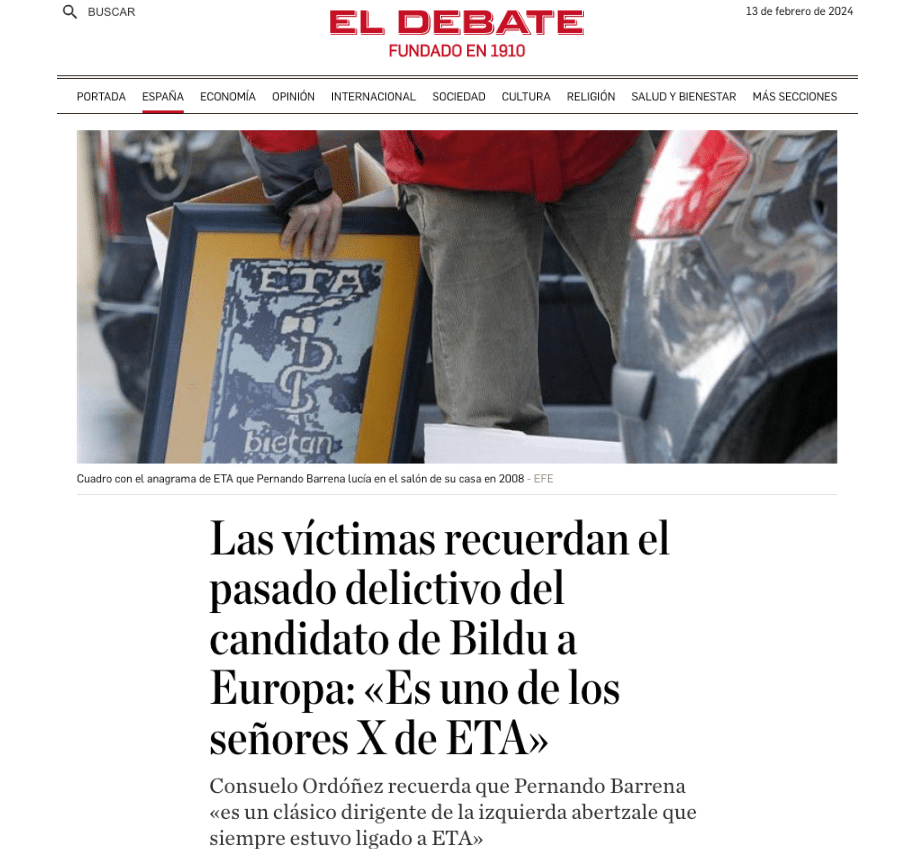 Pernando Barrena ha formado parte de la rama política de ETA. De eso no hay duda. No sólo es que así lo haya determinado la justicia, sino que gran parte de los navarros, salvo los más jóvenes, lo hemos visto durante años en calidad de testigos. No es que Pernando Barrena defendiera o justificara o dejara de condenar la violencia de una organización, sino que formaba parte de esa organización. La organización mandaba a una parte de sus miembros a las instituciones democráticas mientras que a otra parte de sus miembros, literalmente, los dedicaba a matar a los que les llevaban la contraria a los que habían enviado a las instituciones. Ese es el esquema en el que decidió militar Pernando Barrena y el tipo de catadura moral que consecuentemente se puede esperar de esta persona.