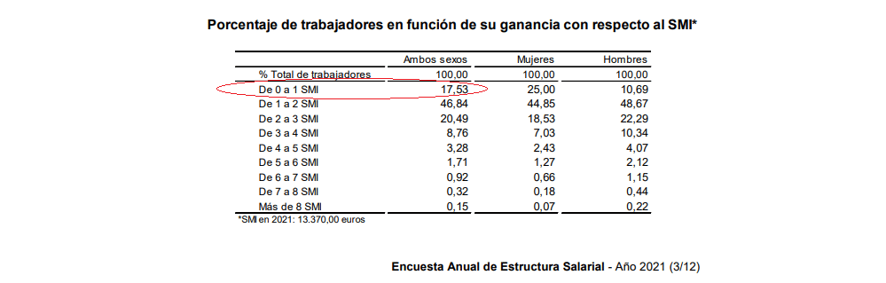 En el 2018, menos del 5% de los asalariados en España cobraba el SMI, el año pasado ya estaba por el 50% es decir no se han subido los salarios ni de lejos, ahora mñas gente cobra el SMI.