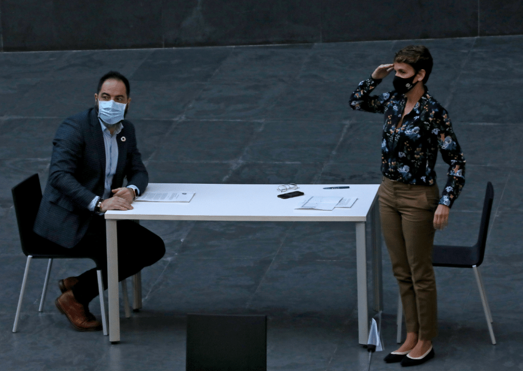 Un momento visualmente impactante de la comparecencia de Chivite fue aquel en que se le mostró una foto en que la presidenta de Navarra aparecía en posición de firme y haciendo el saludo militar (¡a sus órdenes) ante Santos Cerdán. La pregunta obvia tras mostrársele la foto fue: “¿está usted a las órdenes del señor Cerdán?”. A lo que Chivite contesta significativamente: “El señor Cerdan ocupaba un alto cargo dentro de la organización del Partido Socialista Obrero Español concretamente el tercero en relevancia”. Al insistirse en la pregunta, Chivite vuelve a decir: “lo que le estoy diciendo es que el cargo que ocupaba el señor Cerdán es el tercero en la organización de la que yo también formo parte”.