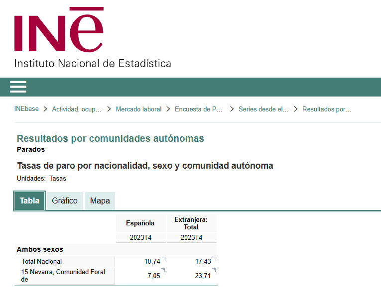 Las cifras son evidentes. El paro entre la población inmigrante es mucho más elevado que entre la población nativa. En Navarra, concretamente, la tasa de paro entre los inmigrantes más que triplica la tasa de paro de los navarros de origen. Cuando por tanto se nos dice que hace falta importar mano de obra inmigrante son sólo palabras, frente a la realidad de los datos.