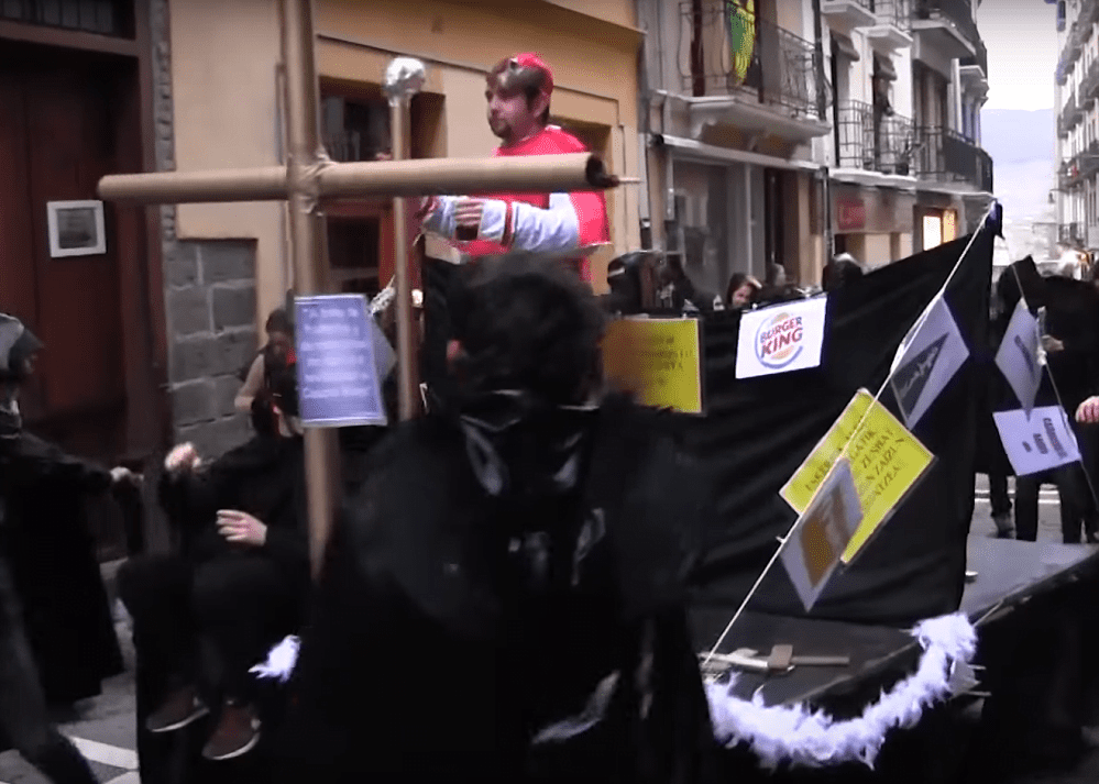 Un artículo de Miguel Cornejo (responsable de Asociaciones y Entidades en Ciudadanos Navarra) en navarrainformacion.es, publicado hace unos días, nos ponía en la pista de un suceso que habría ocurrido en el Casco viejo de Pamplona durante los pasados Carnavales. En dicho artículo se denunciaba que en una carroza  «fuera expuesta, junto a una guillotina, una lista de los comercios del Centro de Pamplona que se  han atrevido a poner carteles en sus escaparates contra la “amabilización” sin anestesia del señor alcalde. La “participación ciudadana” quizá explique que la alegre cabalgata se dedicara a increpar a esos comercios a su paso, con casi tres minutos de insultos ante  el Burger King, una tienda de dulces o una casa de subastas. Oir lo de “kampora”, “chorizos” y “fascistas” de boca de un aquelarre de okupas con alzacuellos debería dar risa. Pero por alguna razón no la daba”.