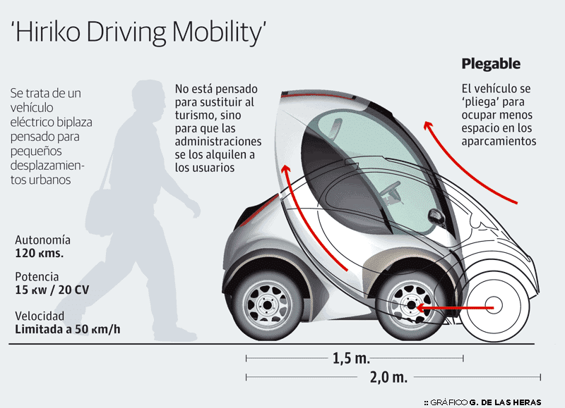 El Hiriko iba a ser el coche eléctrico vasco, plegable para facilitar su aparcamiento, optimizado para ser utilizado en áreas urbanas pero dotado de una autonomía de 120 km y una velocidad punta de 50 km/h. En vascuence, “hiriko” significa “urbano”, o “de ciudad”.