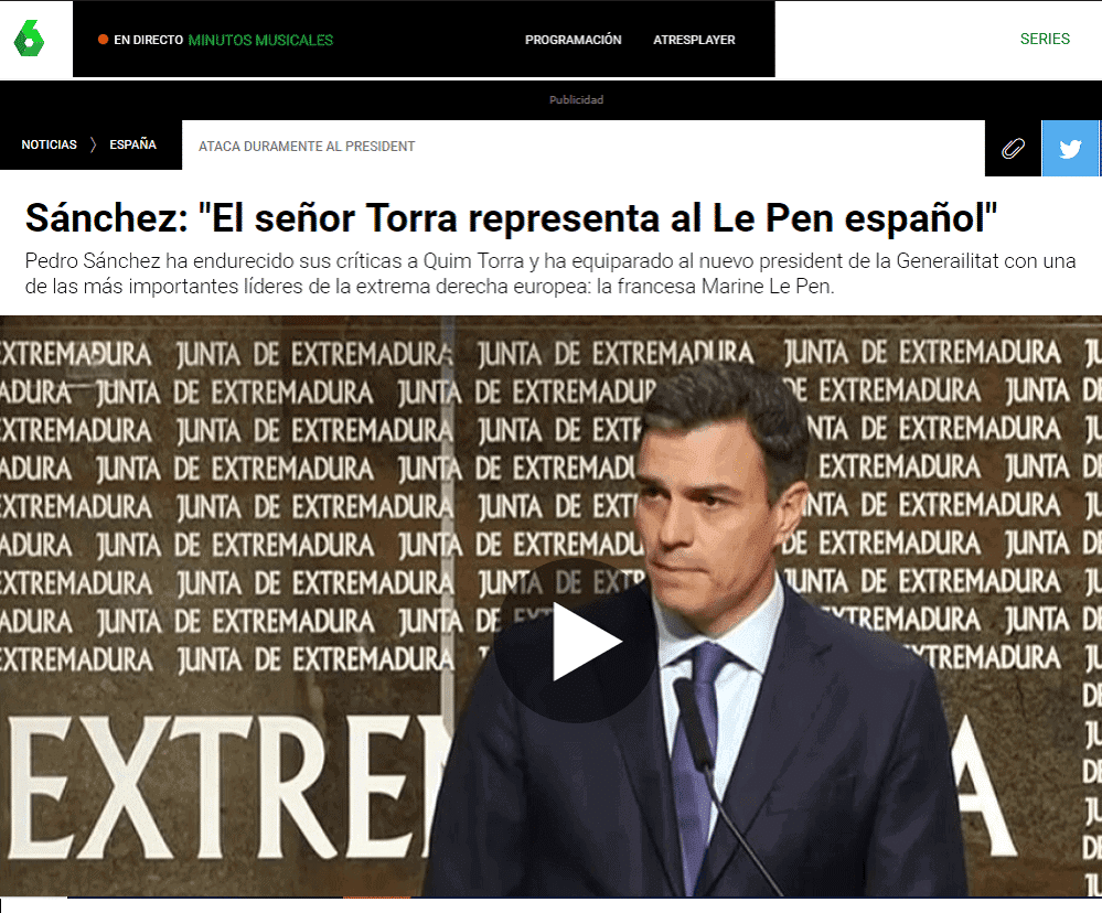 Cronológicamente, hace mucho que el PSOE tuvo que sentar precedente a la hora de ver qué se hacía con los partidos extremistas. La alternativa era o un pacto a la alemana, uniéndose la izquierda a la derecha moderada para aislar a la extrema izquierda, o por el contrario abrazar el discurso de la extrema izquierda para no seguir perdiendo votos en su favor. Lo que hizo el PSOE ya es historia, puesto que después de dar varios tumbos efectivamente ha abrazado a PODEMOS y no sólo ha llegado al gobierno y se mantiene en él gracias a ellos, sino también gracias a los partidos que han llevado a cabo una rebelión contra el estado español según las propias declaraciones de Sánchez en su momento.