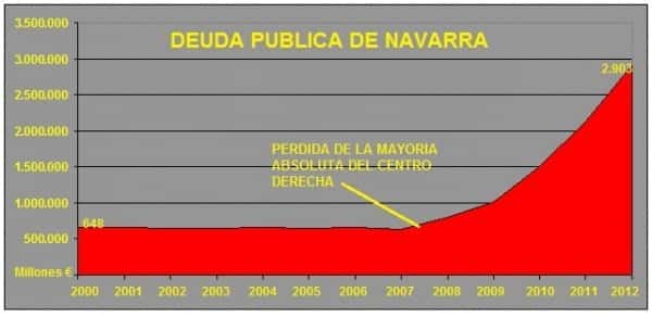 En un estado semiquebrado al borde del rescate parece un tanto ocioso recordar que Navarra tiene un problema con su deuda, pero es cierto que lo tiene. Lo que es peor: lo tiene de una forma creciente porque la deuda de Navarra es la que más crece de todas las comunidades autónomas. De hecho, la deuda de Navarra ya resulta virtualmente impagable. Una deuda de 3.000 millones implica 30 millones de euros por cada punto de interés y 300 de principal si, pongamos por caso, tuviéramos que devolverla en 10 años. Evidentemente Navarra no tiene 400 millones de euros anuales para pagar lo que debe. Sin embargo, esa deuda no estaba ahí al comienzo de la crisis. Esa deuda ha ido creciendo año tras año por dos razones:
