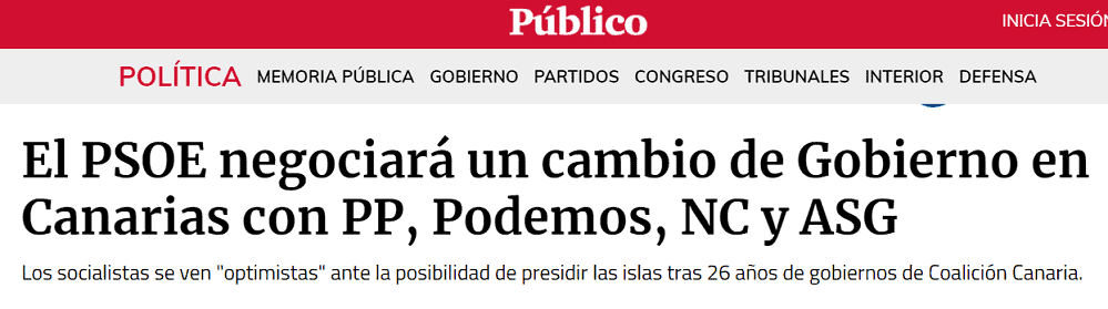 Mientras el PSOE necesitaba a Coalición Canaria para conseguir los 176 diputados, resultaba imposible atacar a Coalición Canaria para arrabatarle el gobierno insular. Sin embargo, al bajar a 174 la mayoría absoluta y convertirse en prescindibles los diputados de Coalición Canaria, el PSOE ya no tiene obstáculos para asaltar ese gobierno, arrebatárselo tras 26 años a Coalición Canaria y apuntarse una comunidad más al mapa socialista. De hecho es justo lo que acaba de anunciar el PSOE que va a hacer, coincidiendo con el posible anuncio oficial de la rebaja a 174 de la mayoría y el rechazo de Ferraz a un gobierno en Navarra dependiente de Bildu.