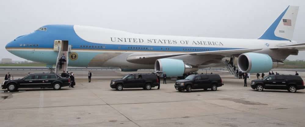Aparte del Marine One, no es imposible que veamos por estos pagos aterrizar también al famoso Air Force One, que tampoco es un avión concreto, sino cualquier avión del Ejército delAire de los EEUU en el que viaje el presiente. Lo que sucede es que el presidente suele viajar siempre en un Boeing VC-25, una versión del Boeing 747 “Jumbo”, del que por otro lado hay dos modelos para tener un recambio en caso de incidencia.