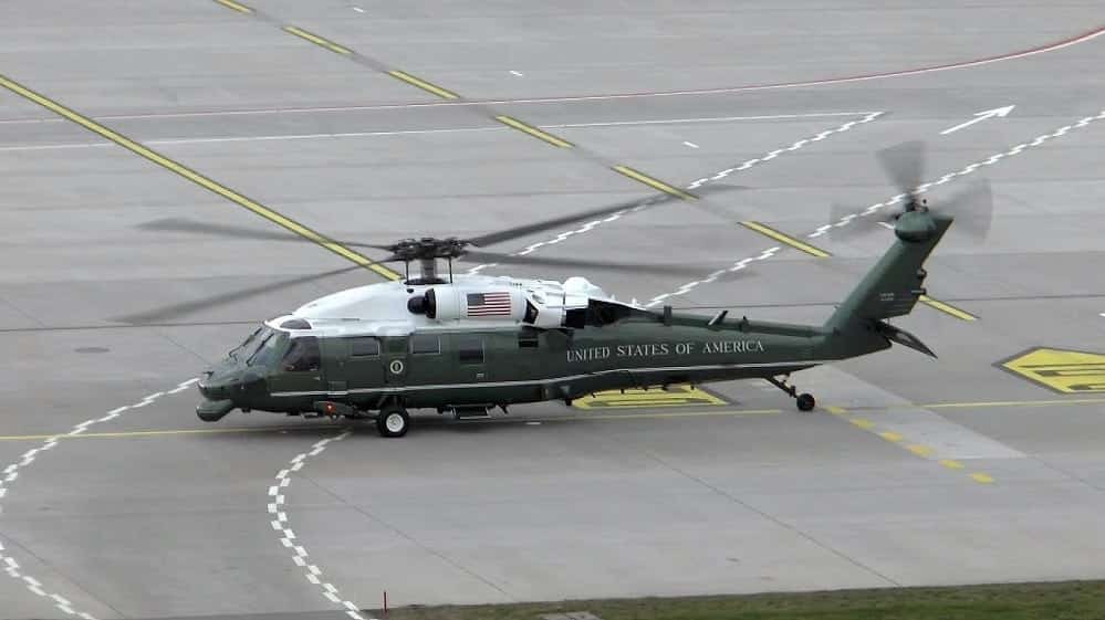 Cabe señalar que el Marine One no es un helicóptero concreto. Cualquier helicóptero del cuerpo de Marines en el que viaje el presidente de los EEUU es denominado como Marine One. Los Marines tienen un grupo de helicópteros destinados al transporte de personalidades denominado Marine Helicopter Squadron One (HMX-1). El helicóptero que se observa en la imagen, como el llegado a Fuenterrabía, es un VH-60 White Hawk, una variante del conocido Sikorsky UH-60 Black Hawk.