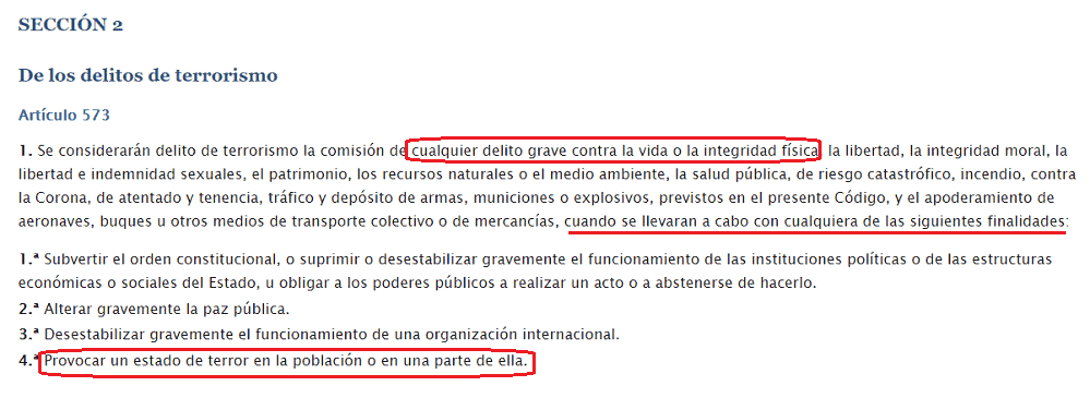 Para empezar, veamos los supuestos que el Código Penal establece como susceptibles de ser calificados como actos terroristas.