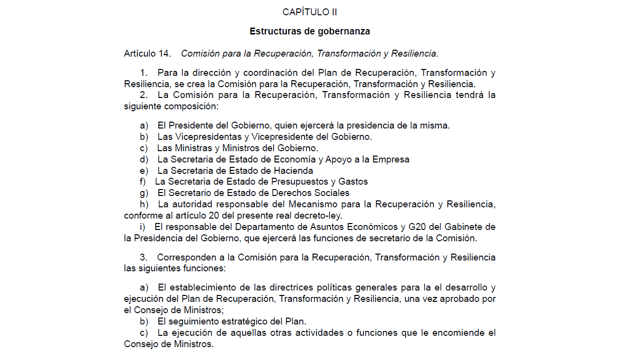 Tal como prometíamos hemos analizado el Plan de Recuperación y “Resiliencia” en 25 palabras. Es posible que el experimento les parezca ilustrativo o no. Alguna pista de por dónde va el plan sí que parece que da. Como remate, esta captura en la que de algún modo se confirma la tesis de que los 140.000 millones que Europa entrega a España pasan por una comisión en la que el presidente y el vicepresidente cortan el bacalao. Con 140.000 millones en el bolsillo y el presidente y el vicepresidente repartiéndolos, es un gran momento para ser sus amigos. Con estas 21 palabras quizá se pudiera haber resumido el Plan incluso más brevemente y mejor.