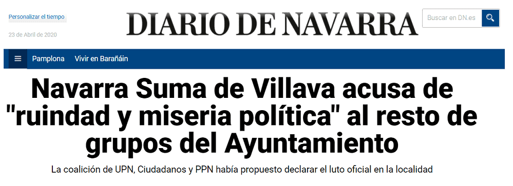 En señal de duelo ante estos datos y las historias personales que hay detrás de ellos, el Consistorio ha prendido un crespón negro en la bandera de Pamplona de la fachada del Ayuntamiento. Asimismo, la web municipal www.pamplona.es y las redes sociales del Consistorio también se solidarizarán con las víctimas del coronavirus y sus familias, colocando en su cabecera un pequeño lazo negro en señal de luto.