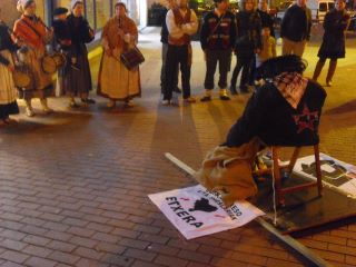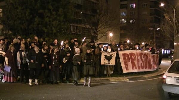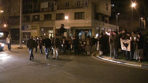 Y ya lo que repugna es la utilización del nazionalismo vasco, que ha convertido la celebración de la llegada del hijo de Dios y una reivindicación política a favor de los presos de una banda de asesinos, da pena ver como sigue asistiendo gente a verlo como si fuese una costumbre tradicional y como tienen que tolerar ver pasar a las gestoras y sinvergüenzas con sus carteles…