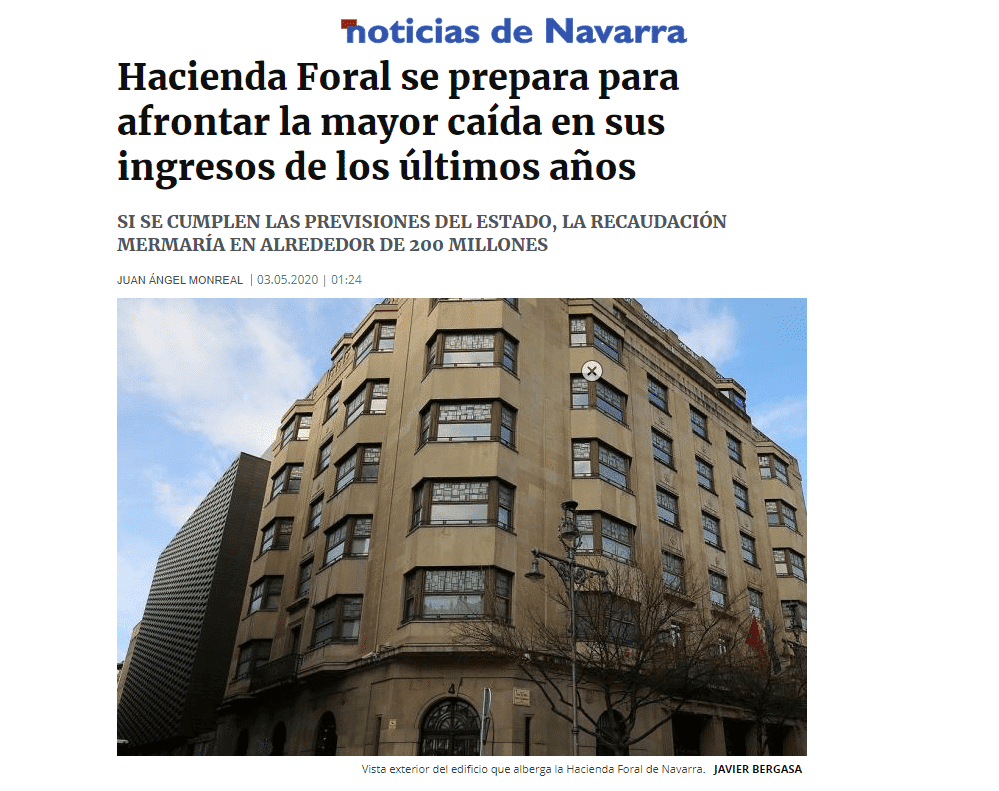 Si el Noticias dice que viene curva, parece bastante claro que no es por animadversión al gobierno de progreso sino porque realmente ve que viene una curva. Una curva que el diario concreta en una caída de la recaudación foral de entre 200 y 400 millones de euros en virtud de las estimaciones que se están barajando. El hundimiento de la recaudación al que nos enfrentamos viene avalado también en el artículo del Noticias por Juan Carlos Longás, economista escasamente sospechoso asimismo de antipatizar con los gobiernos de progreso. Es decir, hablamos de un diagnóstico que indudablemente no se basa en la antipatía al gobierno.