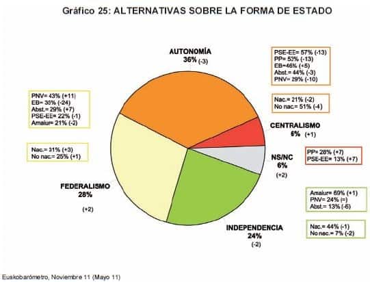 Tercera sorpresa: sólo el 24% de los vascos, incluidos los nacionalistas, se declaran independentistas