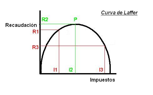 La curva nace en los años setenta, durante una cena en Washington en el restaurante Two Continents. El economista Arthur Betz Laffer trataba de explicar a unos amigos suyos cómo no había una correlación permanente entre más impuestos y más recaudación. La curva nace de un planteamiento obvio de Laffer: si tuviésemos que pagar el 100% de lo que ganamos en impuestos, nadie trabajaría, invertiría o crearía empresas. Por otro lado, si los impuestos descendieran al 0%, no habría recaudación. La expresión gráfica de este planteamiento era tan simple como dibujar un eje de abscisas con el tipo impositivo, y un eje de ordenadas expresando la recaudación. Laffer plasmó esa noche su teoría en una servilleta, con un dibujo que venía a tener este aspecto.