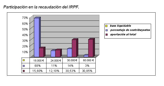 Como datos adicionales a los de la gráfica, podemos añadir que el 79% de las declaraciones navarras presentan una base liquidable inferior a los 24.000 euros. Las inferiores a 18.000, de hecho, constituyen el 68% del total. Las superiores a 30.000 euros suponen el 14% y las superiores a 60.000 el 3%. Sin embargo, la aportación a la recaudación de ese 3% supone casi el 31%. La de quienes declaran entre 30.000 y 60.000, alcanza otro 30%. Quienes declaran rentas inferiores a 18.000 euros, sólo aportan el 15% de la recaudación.