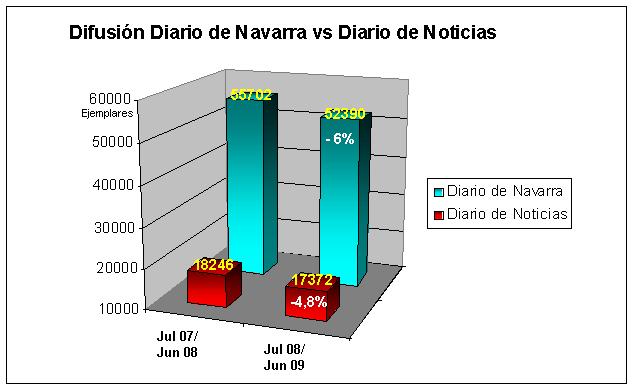 Estos datos se inscriben dentro del contexto general de crisis en el cual es difícil todavía saber cuánto de esta caída se debe a la recesión general de la economía y cuánto al propio declive de los medios escritos. Por lo demás, las cifras muestran una vez más la posición dominante de Diario de Navarra a gran distancia del diario del grupo de noticias vasco.