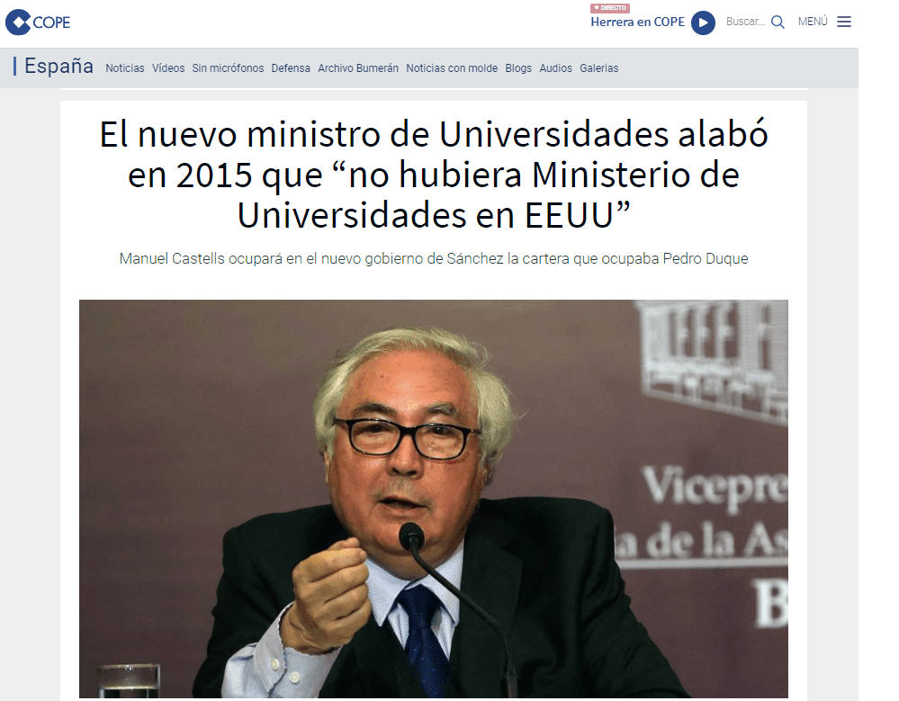 Entre las novedades ministeriales destaca el nuevo Ministro de Universidades. Por un lado porque hace poco se oponía a la existencia de un ministerio de universidades, pero ahora va y cobra por dirigir uno nuevo que hasta su llegada no existía. Por otro lado porque en la TV3 se dedicaba a cuestionar a los jueces, llamar extrema derecha a Ciudadanos y tildar de partidos nacionalistas españoles a todos los partidos que no son nacionalistas catalanes.
