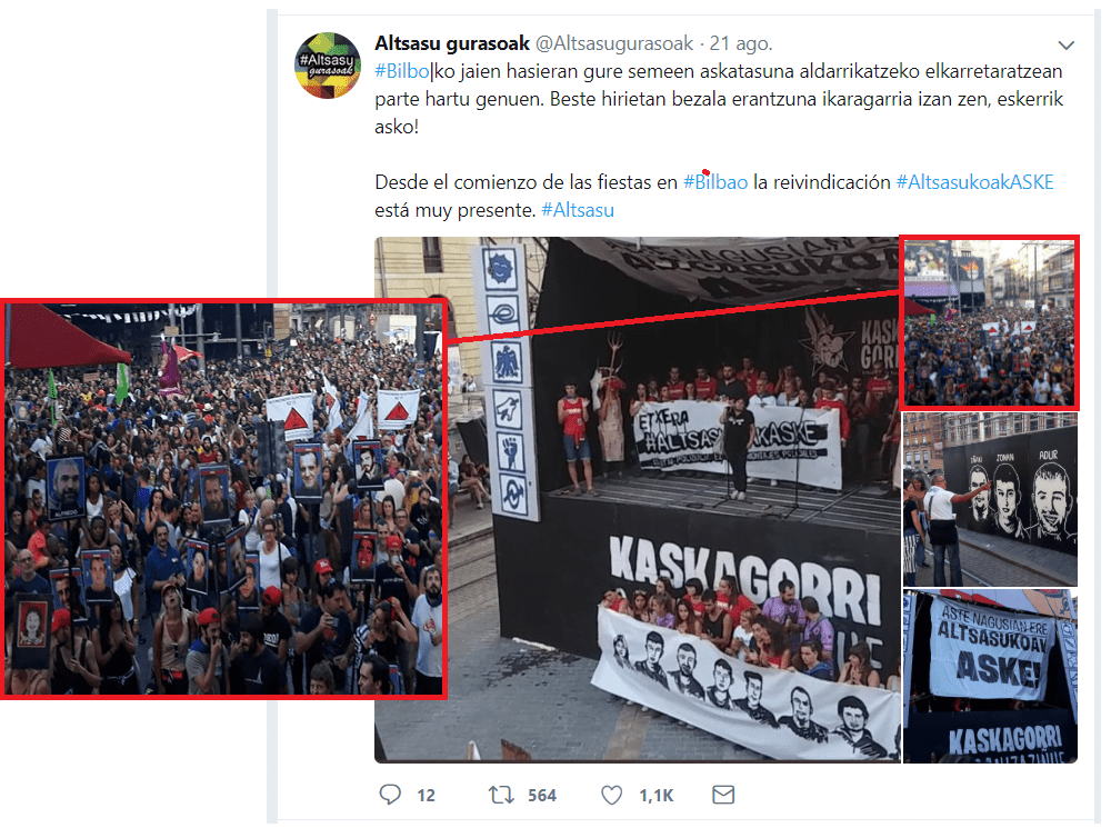 Si hacemos la foto a los asistentes a los ongi etorris o a las manifestaciones en defensa de los presos de ETA, ¿no son los mismos que aparecen en la foto de las manifestaciones a favor de la manada de Alsasua? Los gaztetxes, tabernas, txoznas, conciertos y lugares en los que se defiende a los txabales de Altsasua, ¿no son los mismos lugares en los que se defiende a los presos de ETA? Ongi etorri. Agur eta Ohore. Amnistia. Etxera.