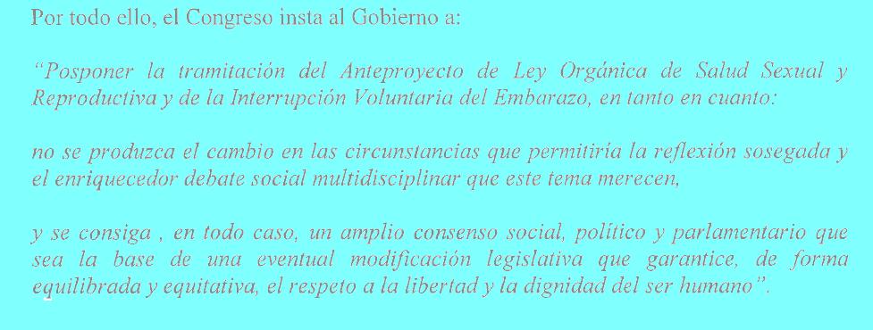 La moción, por tanto, propone “posponer” la reforma de la ley del aborto en tanto no se produzca un mayor análisis que de lugar a un amplio consenso.