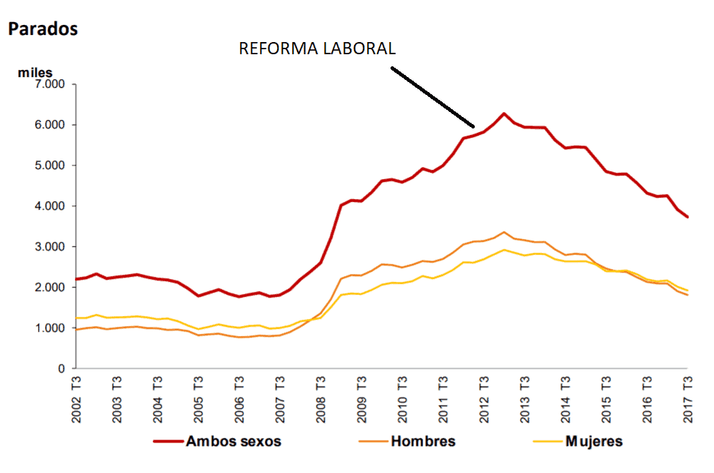 Cuando en el primer trimestre de 2012 se aprobó la reforma laboral, flexibilizando el empleo y la firma de los convenios colectivos, las formaciones de progreso auguraron un colapso en España del empleo. En aquel momento había en nuestro país 5.639.000 parados según la EPA. Naturalmente cualquier observador habría pensado que lo que no funcionaba era no hacer nada, que las barreras de salida funcionan también como barreras de entrada y que blindar los empleos se había probado que era un fracaso, como demostraban los más de 5,6 millones de parados. Pues bien, ¿cuál es el resultado con perspectiva de aquella reforma?