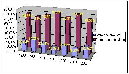 Si nos remontamos a las últimas elecciones en las que Batzarre se presentó bajo sus propias siglas, en el año 2003, comprobamos que esta formación obtuvo 7.873 votos. Esa cantidad de votos, que sería la que perdería Nabai, supondría una subida equivalente en el voto de Izquierda Unida.