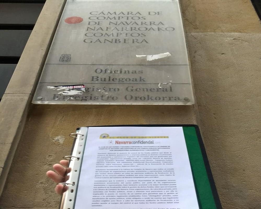 El Club de los Viernes y Navarra Confidencial, que representan el sentir de la inmensa mayoría social navarra, ha puesto de manifiesto repetidamente los peligros sociales, políticos y económicos, así como el atentado contra la libertad que supone la imposición del nacionalismo en Navarra. Por este motivo, solicita a la Cámara de Comptos de Navarra que realice a la mayor brevedad posible una auditoría de fiscalización de los fondos públicos gestionados por las organizaciones privadas anexionistas y supremacistas euskadianas.