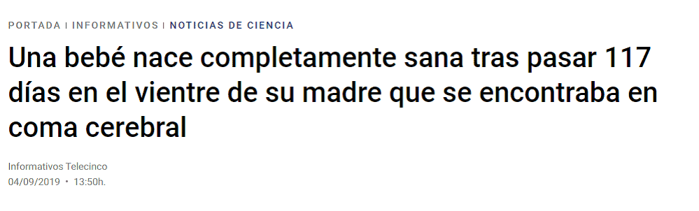 La noticia, por contra, evidencia más allá de toda duda razonable que la madre es una persona y el bebe, se le aborte o no se le aborte, es otra persona. Al punto que, como en la noticia, la madre puede estar ya muerta y su cuerpo seguir gestando al niño que llega a sobrevivir a la madre.