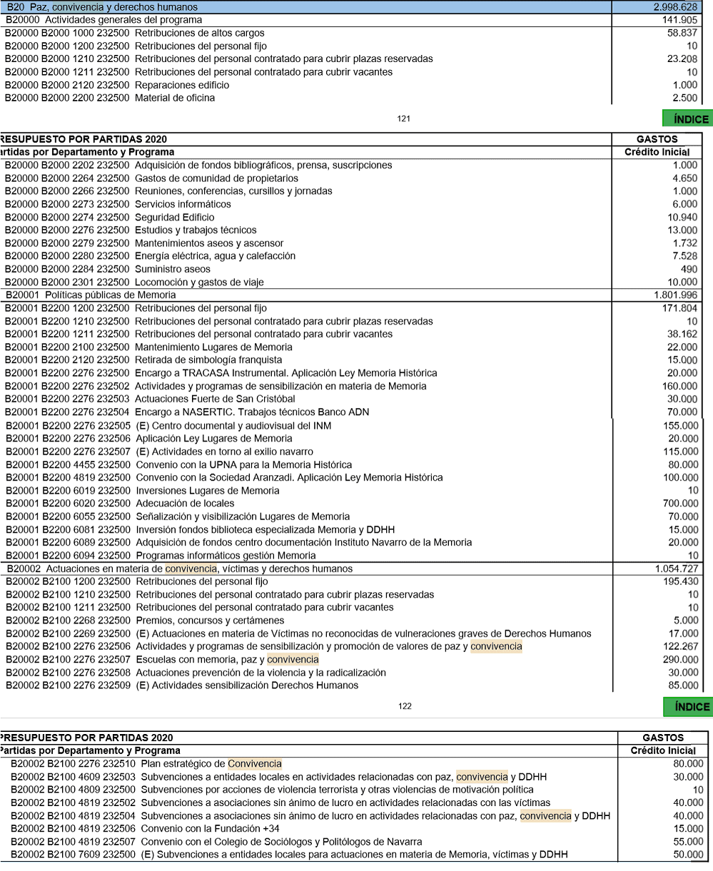 Entre tanto razonamiento intrincado lo que aparece bastante claro en los Presupuestos Generales de Navarra es lo que nos cuesta a los navarros la Dirección General de Paz, Convivencia y Derechos Humanos, que son unos 3 millones de euros al año, de los que casi 60.000 euros van para el sueldo de su alta dirección.