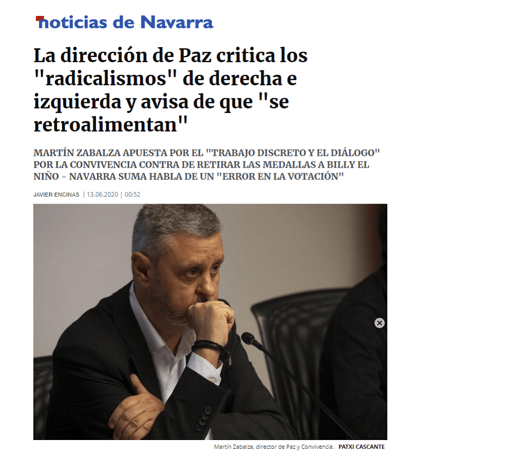 A raíz de los últimos episodios vividos en la comunidad, Navarra Suma ha cuestionado la labor de esta dirección general, evento que ha suscitado el súbito despertar del director quien primero y antes que nada ha dado señales al fin de vida, y segundo ha arremetido contra Navarra Suma. Es decir, no hemos escuchado una palabra a Zabalza mientras las calles de Pamplona ardían, los txabales hacían la kale borroka en la Plaza del Castillo, o las fotos del asesino de Tomás Caballero coloreaban las calles navarras, pero hete aquí que el director general salta como un muelle cuando se critica su callada labor.