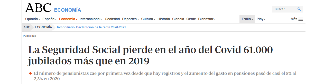 La conclusión para quien se hace una pregunta de sentido común como la de si hay una apreciable diferencia de muertos entre 2020 y los años anteriores es que sí la hay. Esto ya se puede apreciar claramente en las cifras oficiales, aunque aún sean provisionales, en la web del INE. A partir se de esas cifras no sólo se vislumbra la magnitud del exceso de fallecimientos sino también el momento en que comienza a dejarse ver ese exceso. Como dato complementario, siquiera indiciario, podríamos acudir también al del número de pensionistas, ya que los mayores son el colectivo que padece la inmensa mayoría de los fallecimientos.