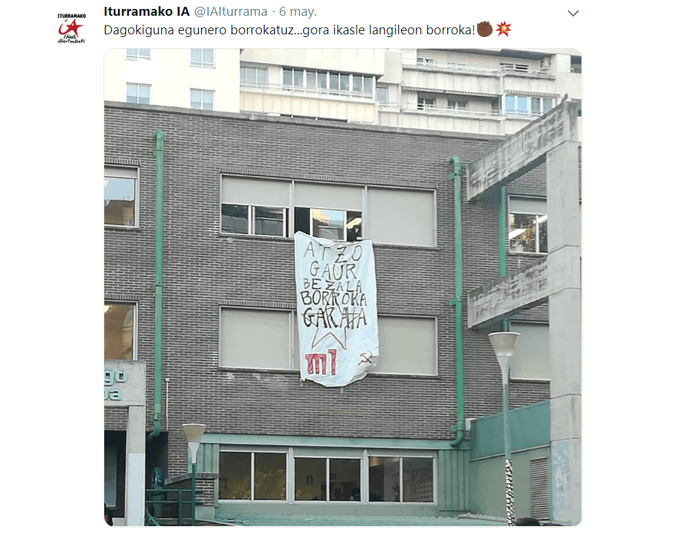 Pues bien, pese al compromiso adquirido por el Ayuntamiento de Pamplona en el primer punto de aquella declaración, para “preservar los centros escolares y sus entornos de acciones políticas y reivindicativas ajenas al hecho educativo”, la realidad es que las pancartas y las campañas reivindicativas de la izquierda abertzale siguen formando parte del paisaje cotidiano de los colegios públicos de Pamplona, y desde luego del Instituto de Iturrama. Todas estas imágenes que les mostramos a continuación son posteriores a la fecha de la declaración del 4 de marzo.