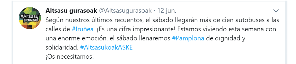 Por si fuera poco, el apoyo a la manada de Alsasua no se limita al nacionalismo, la extrema izquierda, los okupas y todo grupo ultra local de Navarra y de las CAV. También la extrema izquierda del conjunto de España, con todos sus colectivos, se ha movilizado y llamado a sus seguidores a acudir a Pamplona. Los autobuses llegarán a Navarra el sábado en abundancia y desde todos los puntos cardinales. De hecho, empieza a gestarse cierta preocupación entre las fuerzas del orden ante la importante concentración en Pamplona de radicales llegados de todos los puntos de España.
