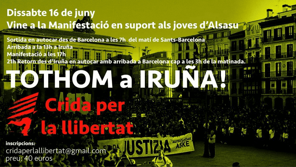 Toda la extrema izquierda española defensora de agresiones machistas va a venir a Pamplona,gracias por avisar, que consuman mucho y no rompan nada. Señor Asiron, que no destrocen nuestra ciudad. Piense que a los pamploneses nos gusta ver nuestra ciudad como a usted le gusta ver la suya (Zizur Mayor) Me ire con mi señora y mis hijos a otra parte.