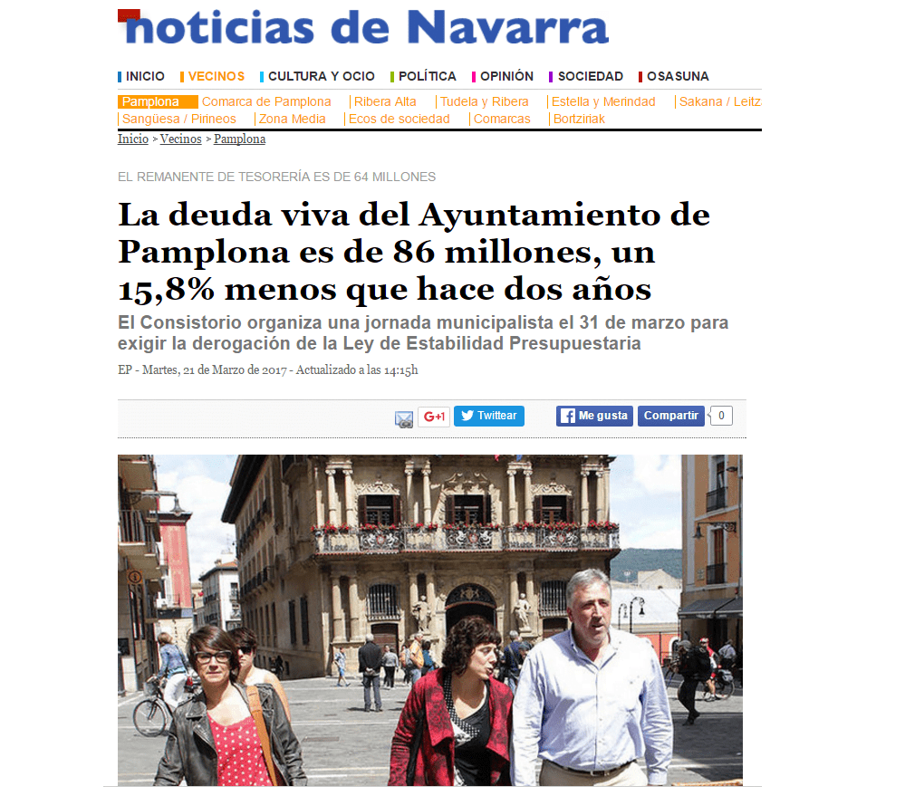 El propio Asirón, de hecho, declaró ayer al comentar los datos de la deuda que lo que a él le gustaría realmente es gastar más y endeudarse más, pero que  «el marco legal financiero pactado en Madrid nos impide hacerlo» y que «No se puede por la regla general de gasto, una legislación impuesta desde Europa y que desde el Gobierno del Estado se ha decidido aplicar a rajatabla, una regla que castiga a ayuntamientos saneados como el de Pamplona y que limita nuestro gasto para priorizar el pago de las deudas».