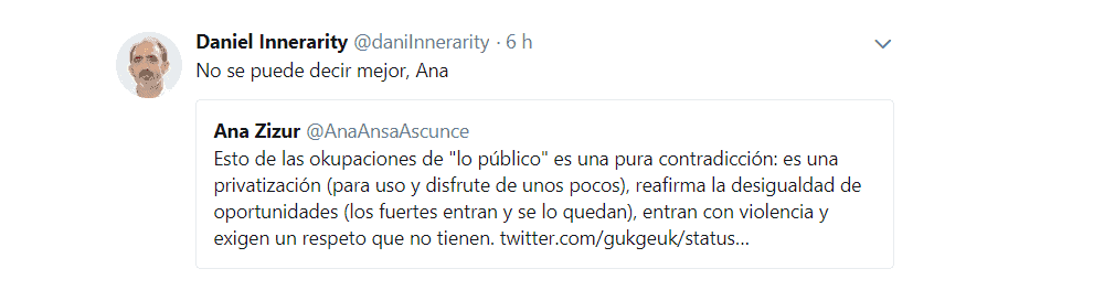 Si el gobierno está lleno de incapaces, a lo mejor Barcos tampoco es tan lista. La moraleja del desalojo, aparte de que los okupas en Navarra pueden hacer lo que les da la gana, es que a lo mejor la Barcos y su equipo no son tan listos. No ya tan listos como ella y su equipo se creen, por supuesto, sino tan listos como acaso nosotros mismos, a base de que nos lo repitan desde los medios de progreso, no han hecho llegar a creer. Otra cosa es que, precisamente por el dominio que ostentan de la Educación y los medios, tengan un amplio margen para ser torpes y seguir manteniendo su apoyo electoral, pero es evidente que tan listos no son. El caos reina en Eucación, Salud e Interior. Casi todas las grandes medidas del gobierno del cambio han resultado ilegales y las están tumbado los tribunales. Las dimisiones asolan las direcciones de las principales consejerías. El control de la máquina de crear opinión permite un amplio margen de error, pero eso no quiere decir que cometer errores les ayude o que el margen sea infinito. Desde luego, como ahora se le recuerda con sorna desde las redes recordando sus tuits tras el desalojo, Geroa Bai se ha hecho a sí misma un hijo de plástico con la desokupación y la posterior reokupación.