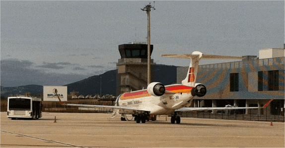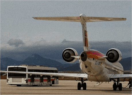 Las imágenes enviadas por nuestro confidente muestran el avión fletado por la CAN poco después de su llegada a Pamplona. A su lado un autobús blanco a bordo del cual los expertos de Saviálogos se desplazarían hacia la terminal del aeropuerto.